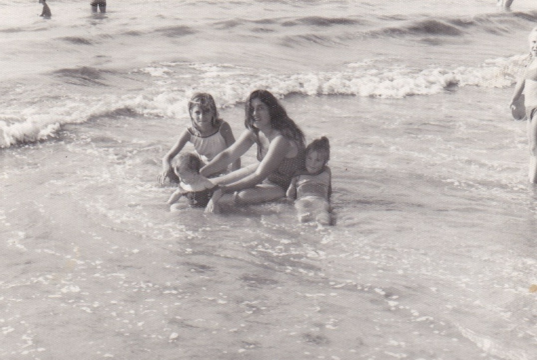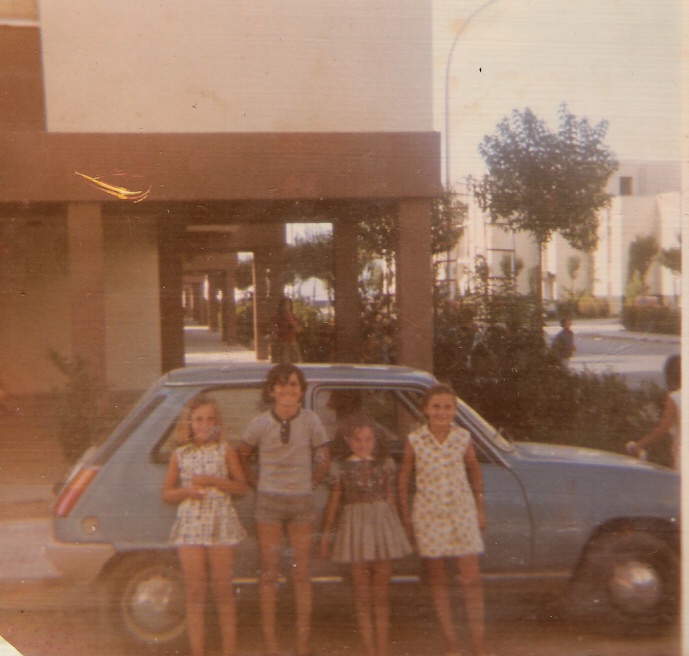 Manuel y Rosario posando para la foto con tres de sus hijos mientras toman el sol, a veces nos preguntamos cómo se hacían tantas fotos en aquellos tiempos donde el dinero era escaso.