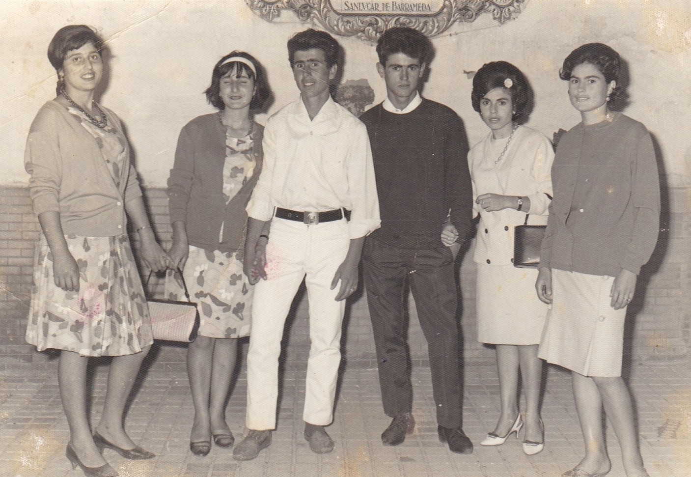 Miguel, Pepi, Mila, Conci, Juani y delante nuestros dos protagonistas con Merchi enmedio.