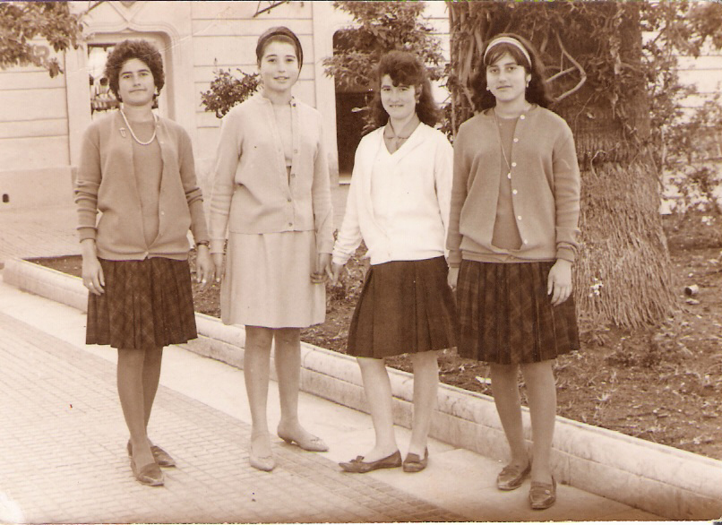 Tres hermanas posando para una foto que ha pasado a la historia familiar: Cuquí es la que tiene el niño en brazos, a su lado Victoria y en el suelo Cariri. Pero...quienes son los dos que asoman por la ventana ?