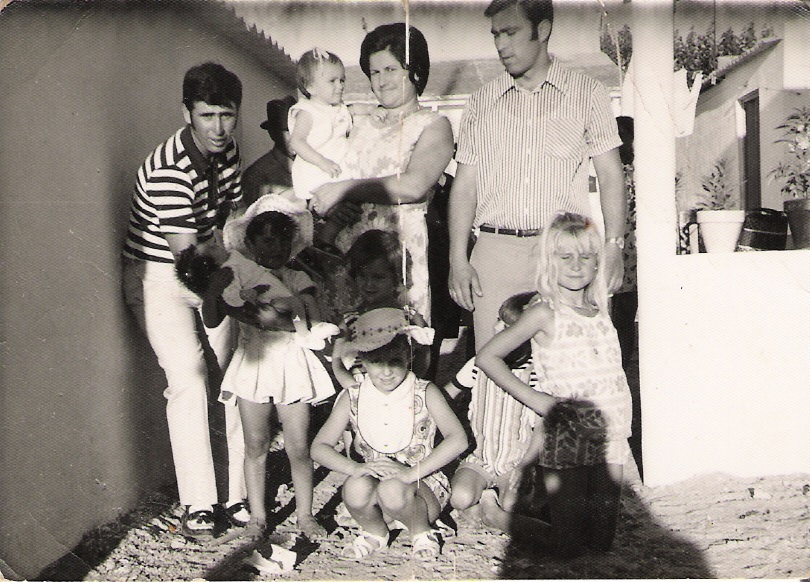Fotografía donde podemos reconocer a Manuel Román con su esposa Carmen y tres de sus hijos (Carmen, Manuel y Javi), también se encuentra las hermanas de Manuel, Mila y Carmen y más la derecha Victoria Eugenia, hija de Hermenegildo y Victoria.